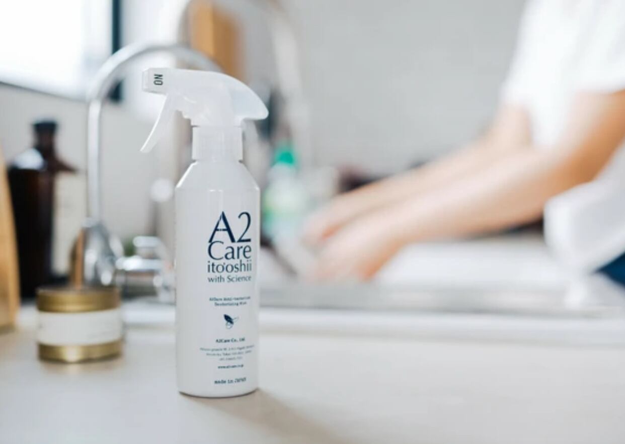 消臭以外にも、除菌やお掃除で大活躍するA2Careは、香りでごまかす一般的な除菌消臭剤とは違い、匂いを基から除去します。