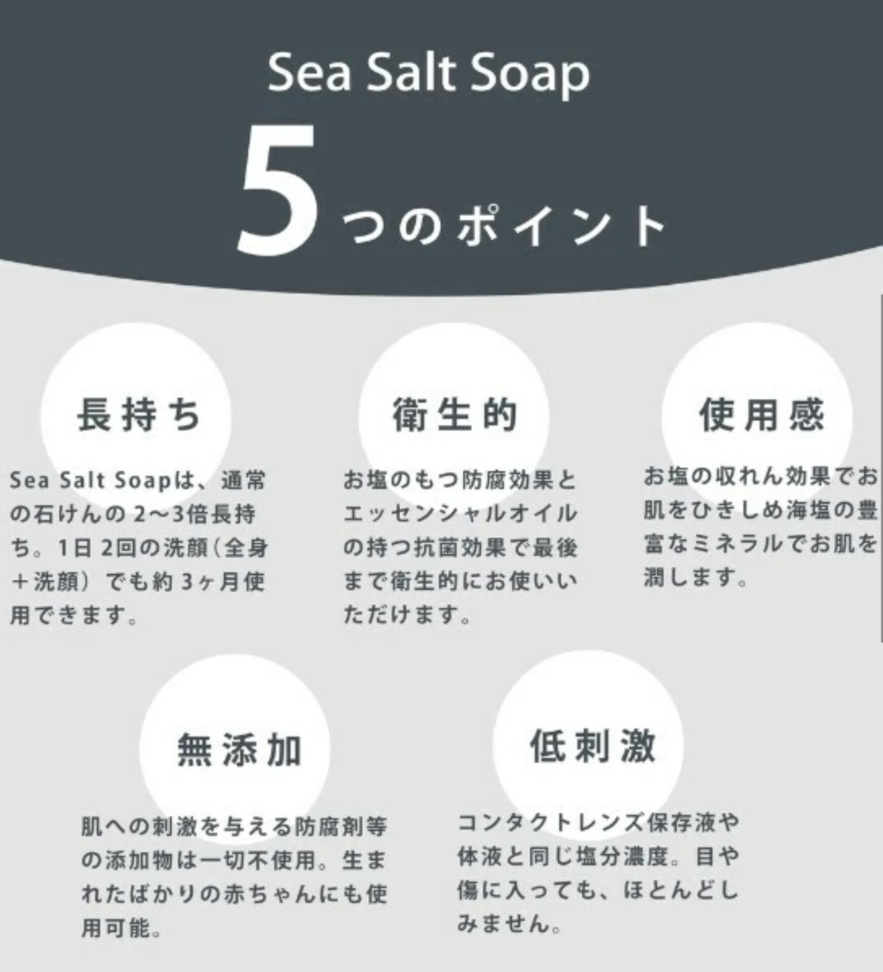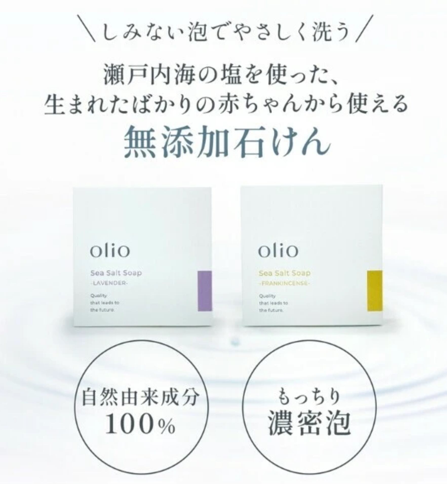 植物性の石けん素地と瀬戸内海の海水からとれた塩でできた無添加石けん。