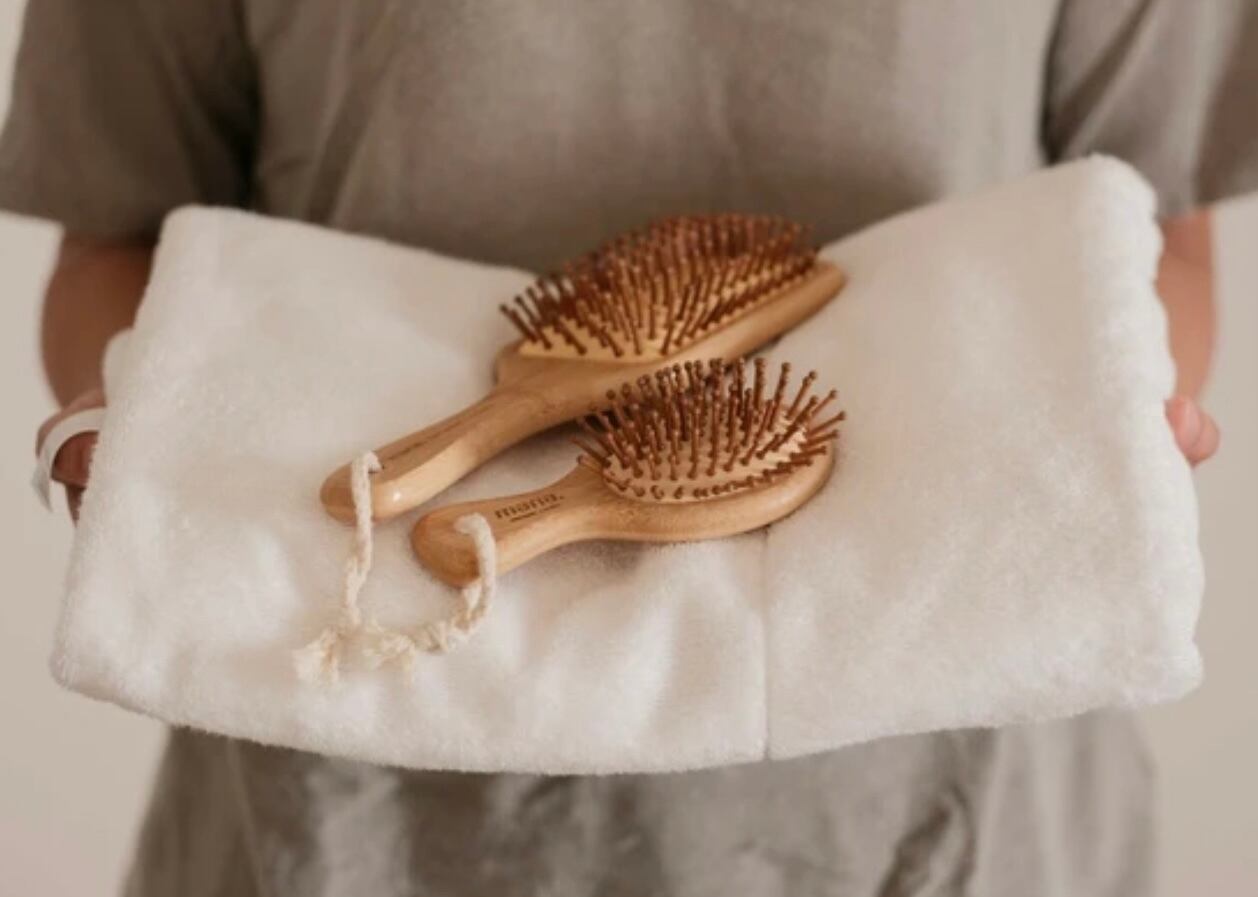 竹自体に含まれる天然油分が頭皮や皮脂になじみ、地肌をすこやかな状態へと導きます。シャンプー前にブラッシングをすると、髪や地肌に付着した埃や汚れが落ちやすくなります。
