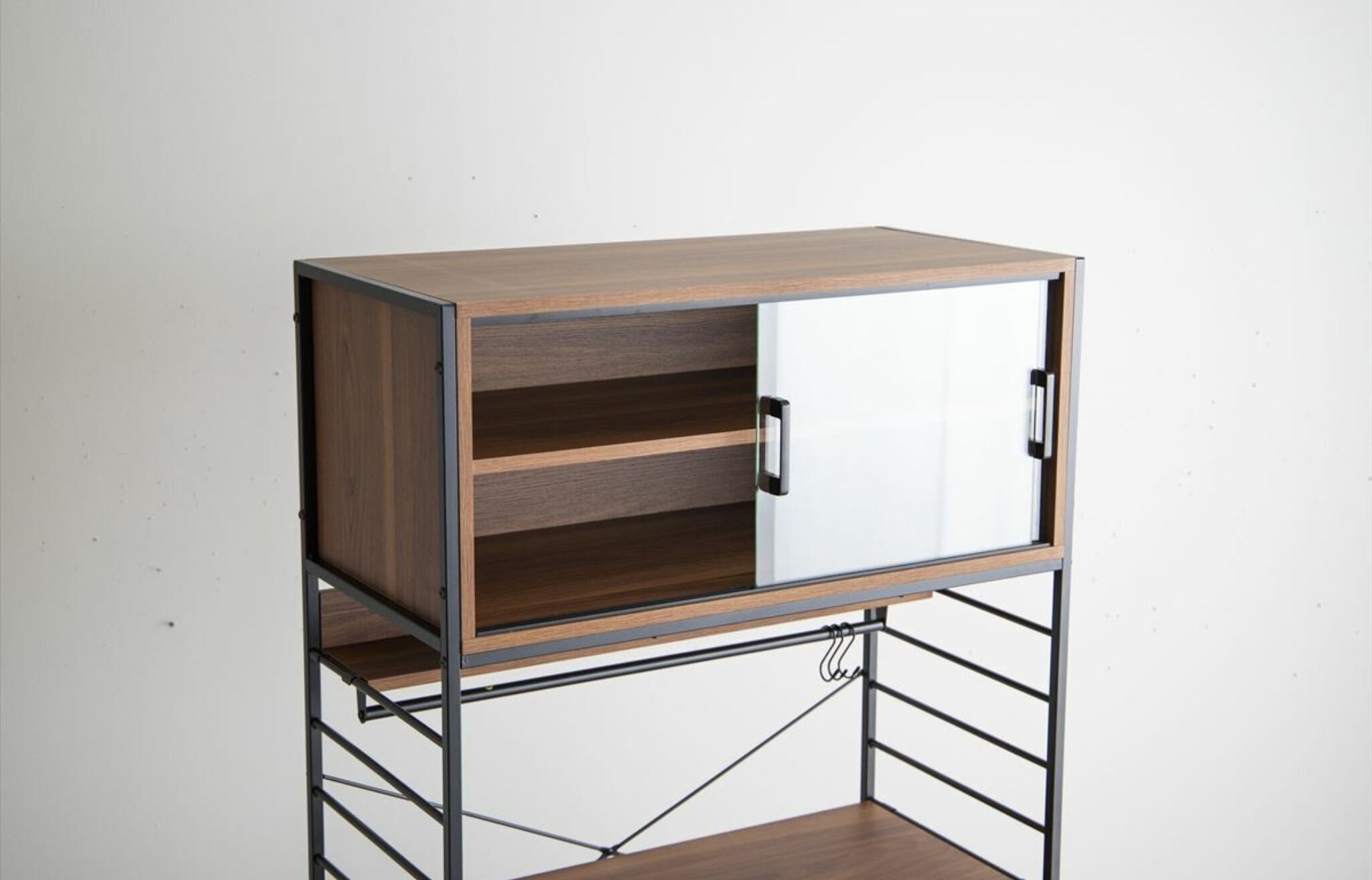 ヴィンテージ感漂う『Carter(カーター)』シリーズの食器棚。美しい木目×スチールの脚が大人の落ち着いた空間を演出します。5種類の収納スペースにより、キッチンに不可欠な家電や雑貨・食器等をまとめて1台に収納可能。オープンスペースの収納が多いので、物の出し入れがしやすく家事を快適に。お気に入りをディスプレイすることで見栄えの良い美しいキッチンが実現できます。