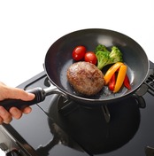 熱伝導性と蓄熱性に優れ、フライパン全体に均一に熱が広がるので、食材をムラなく加熱して美味しく調理できます。