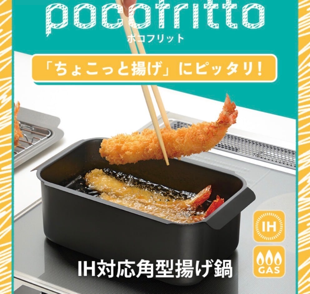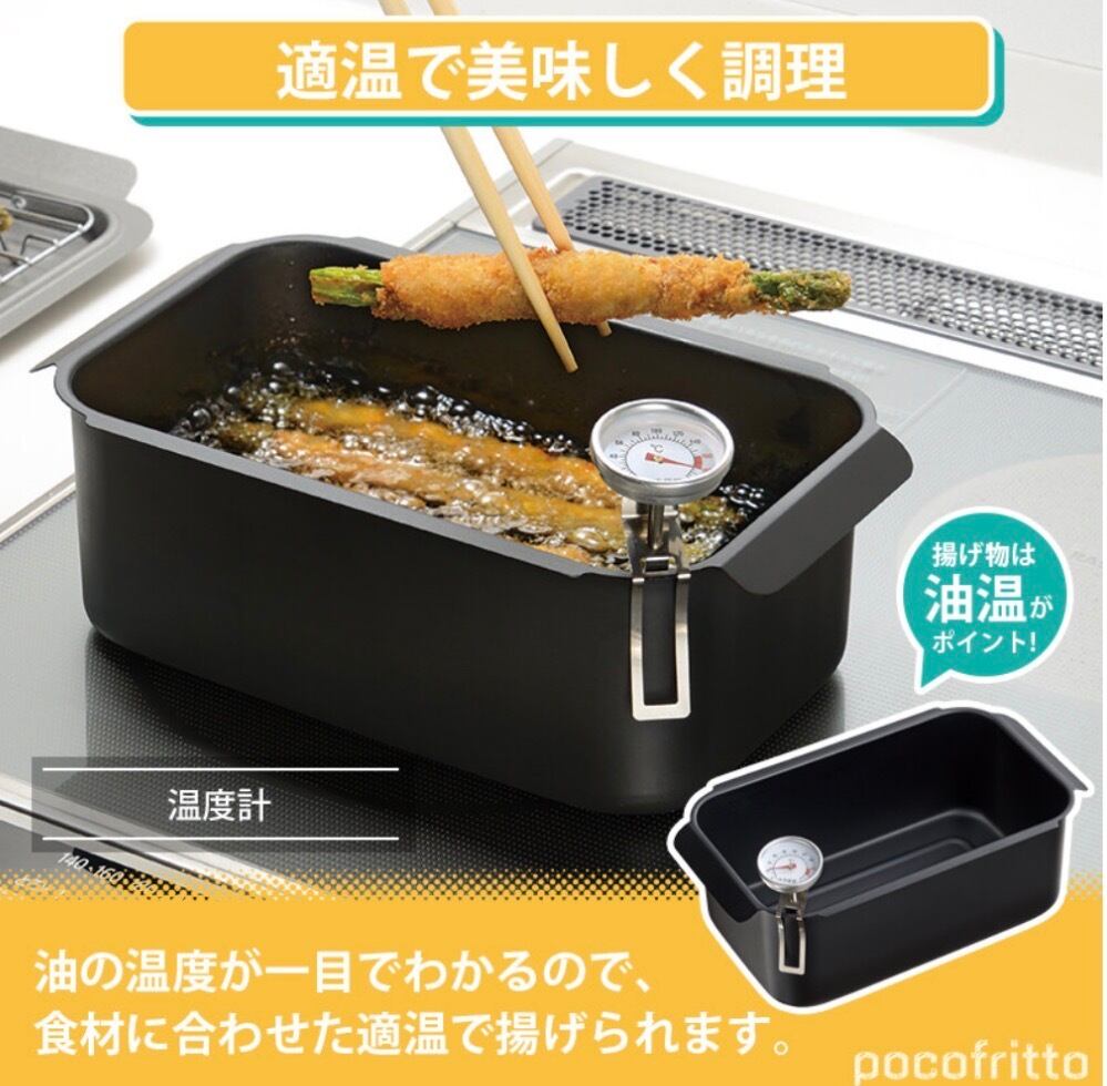 ポコフリット IH対応角型揚げ鍋 ワイド アミ・温度計付