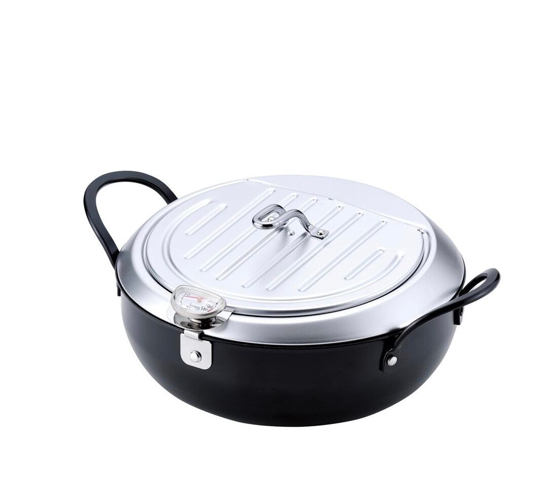 揚げ物を快適に調理できる鉄製蓋付き天ぷら鍋です。