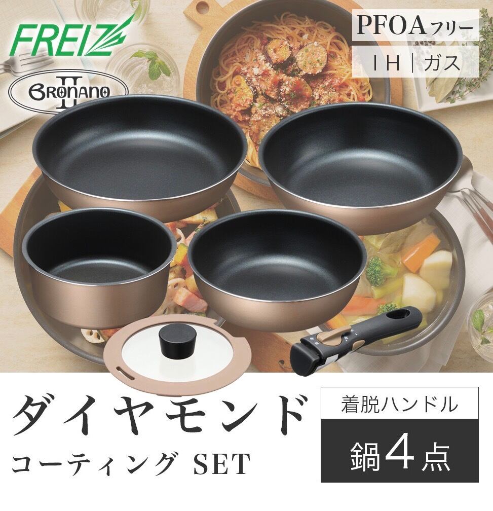 取っ手が取れる 鍋4点セット ダイヤモンドコート