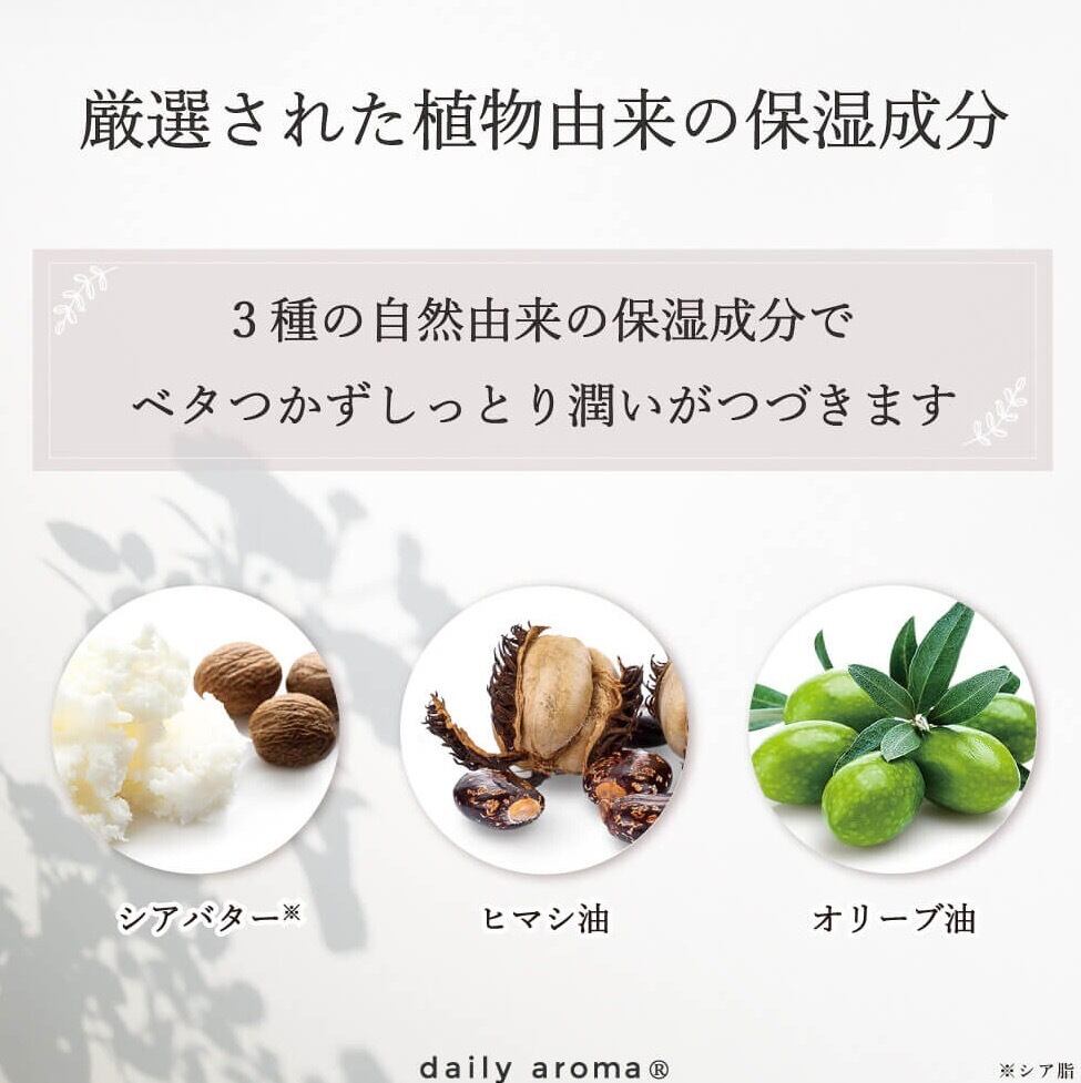 保湿成分にシアバター*2とオリーブ果実油配合の肌なじみがよくサラッとした使い心地のハンドクリーム。